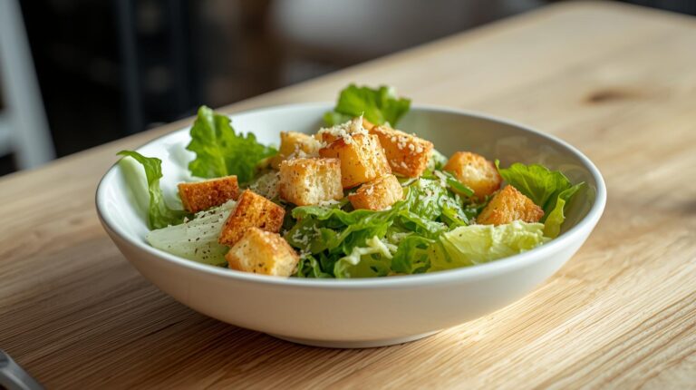 Fresh romaine lettuce with parmesan cheese and croutons
